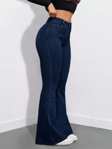 • Kadın yüksek bel cepli İspanyol paçalı kot pantolon
